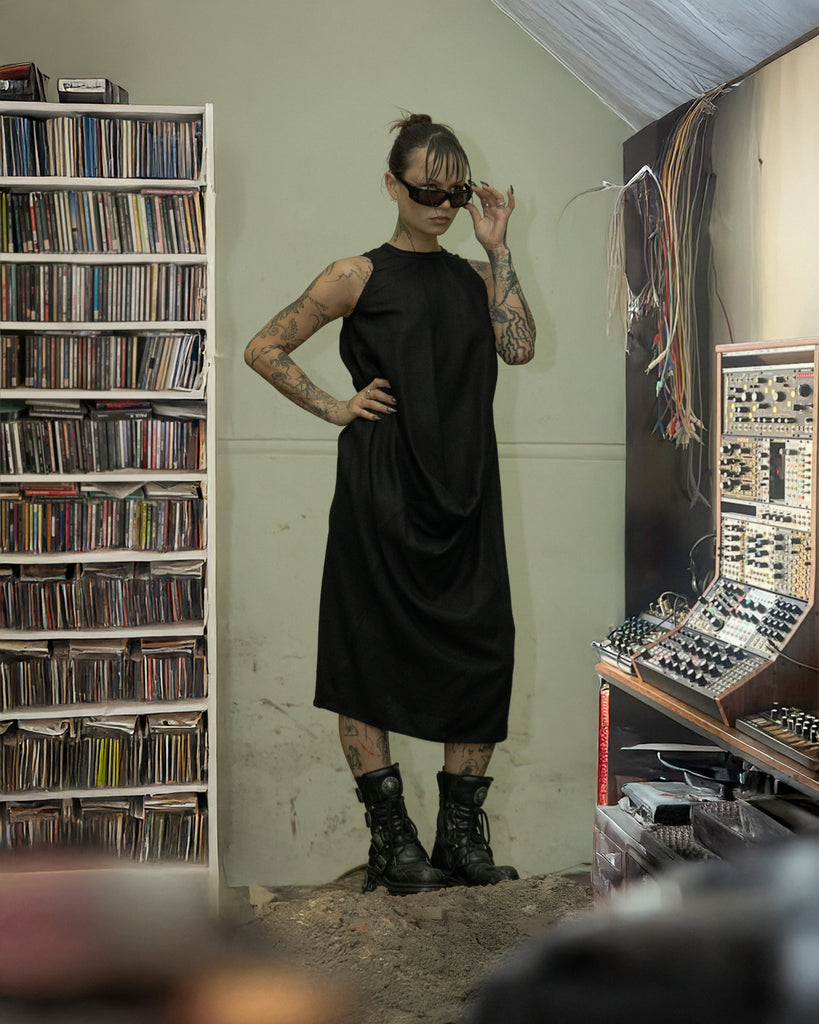 Jean Paul Gaultier Maille Femme 1990's Wool Seam Mesh Dress Extra Large