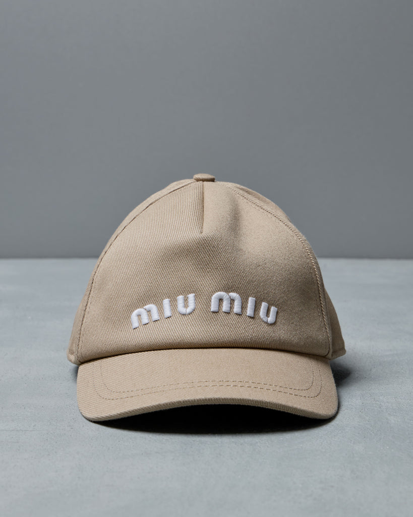 Miu Miu 2023 Embroidered Logo Drill Cap in Khaki/White Large