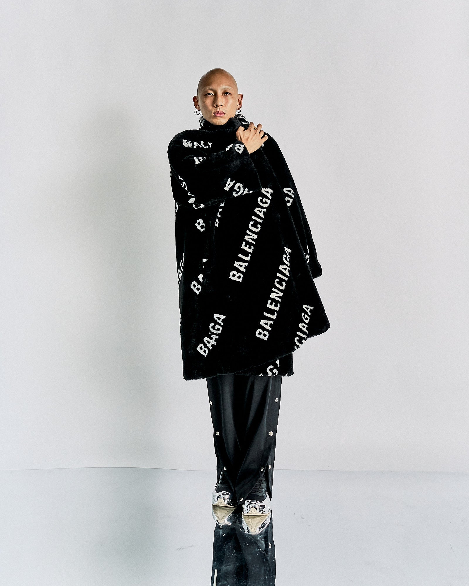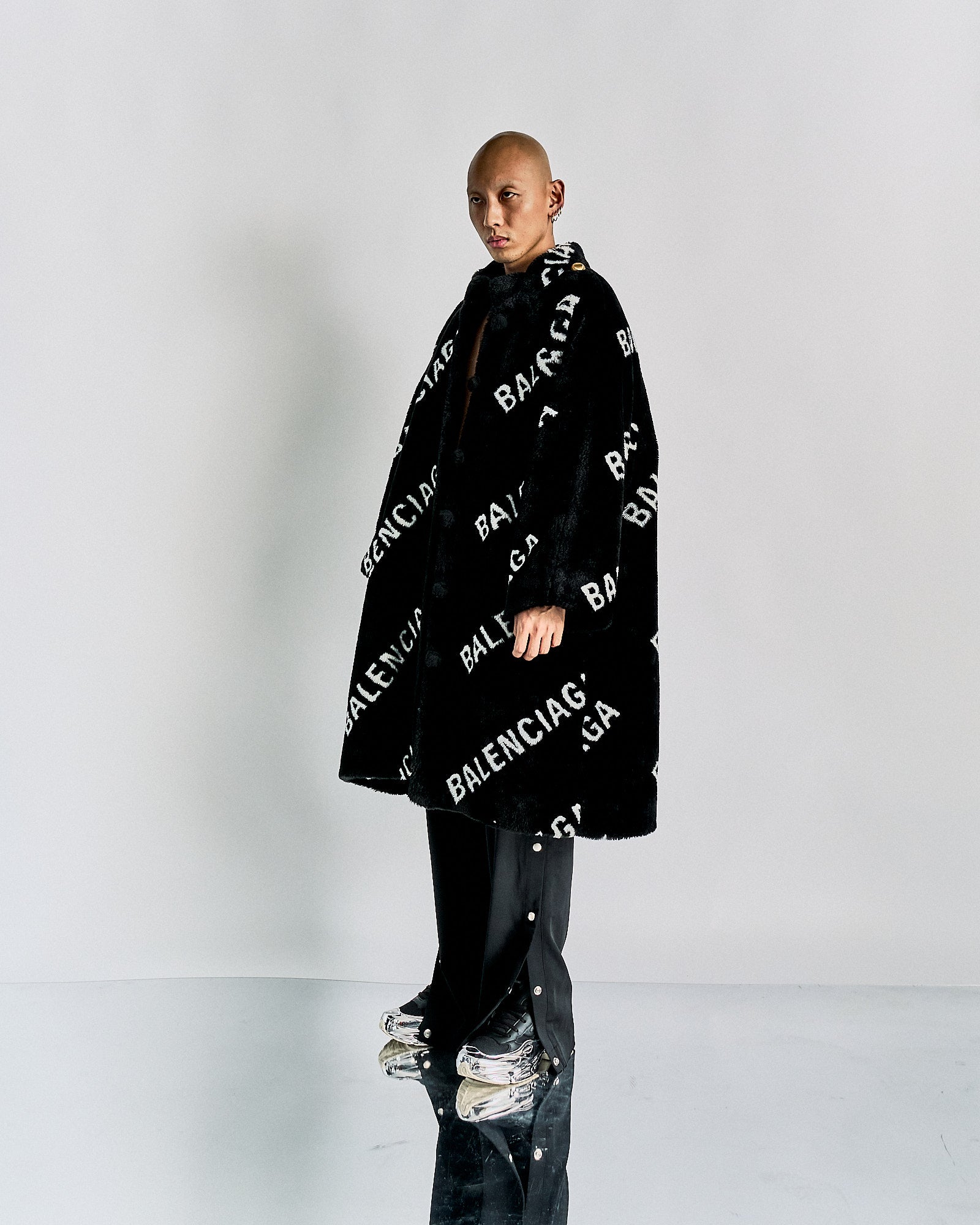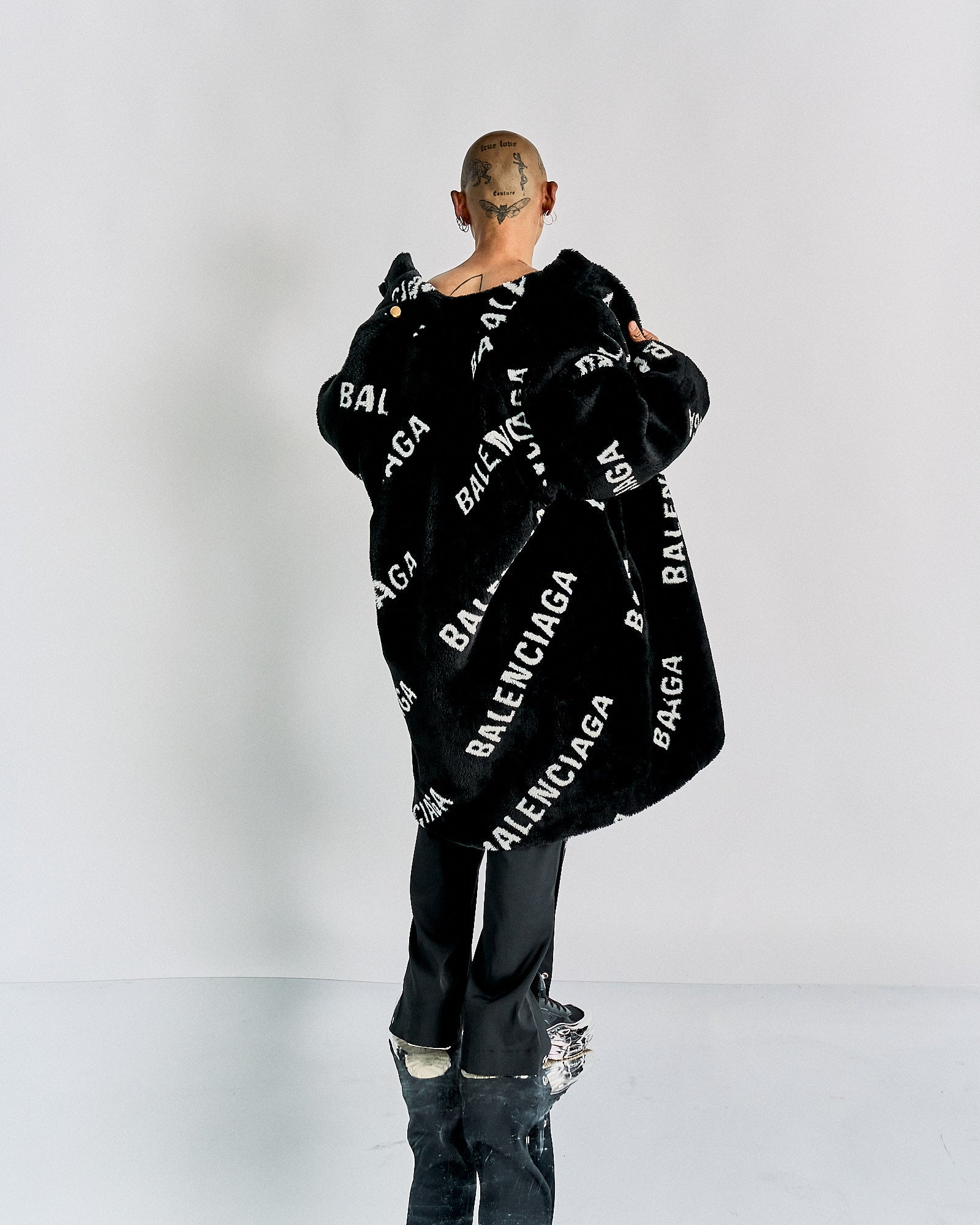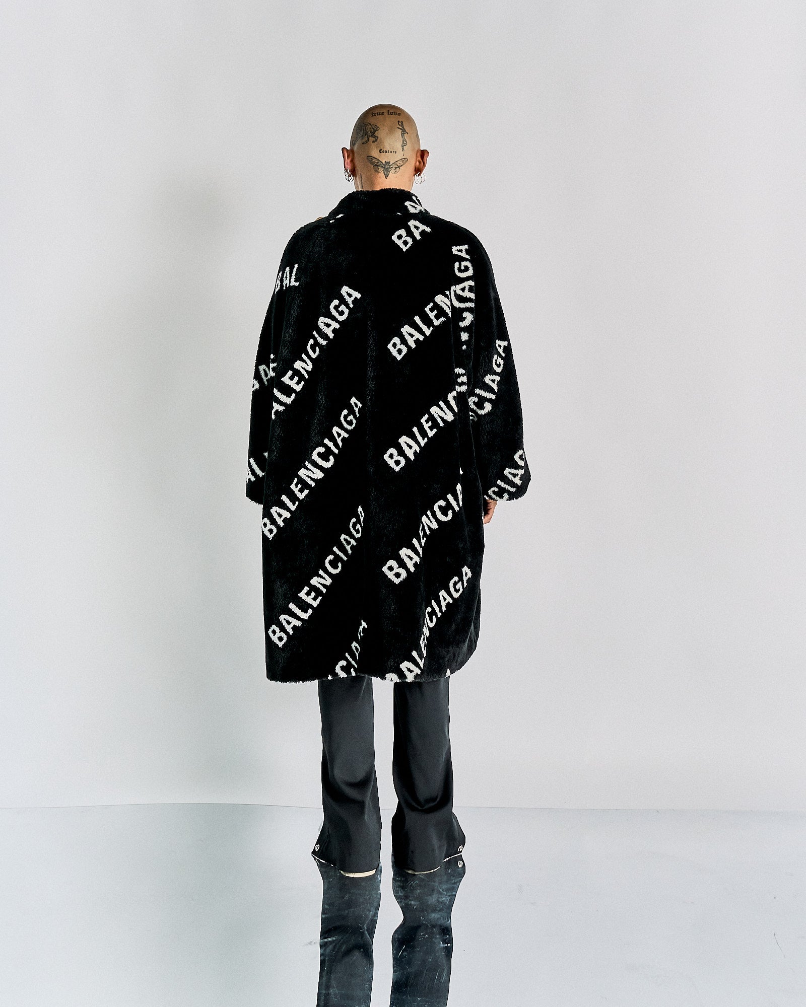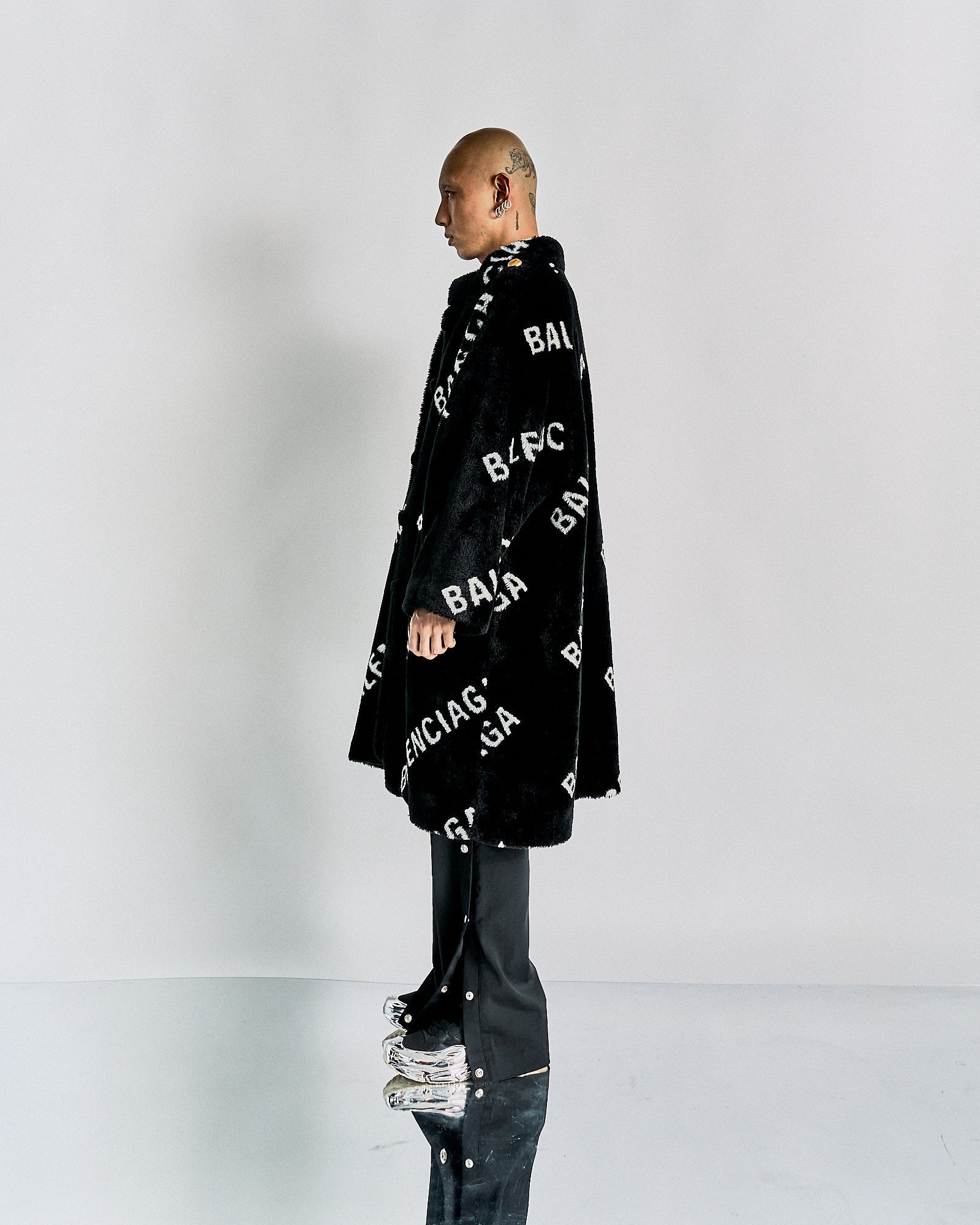 Balenciaga FW 2019 Faux Fur Logo Coat