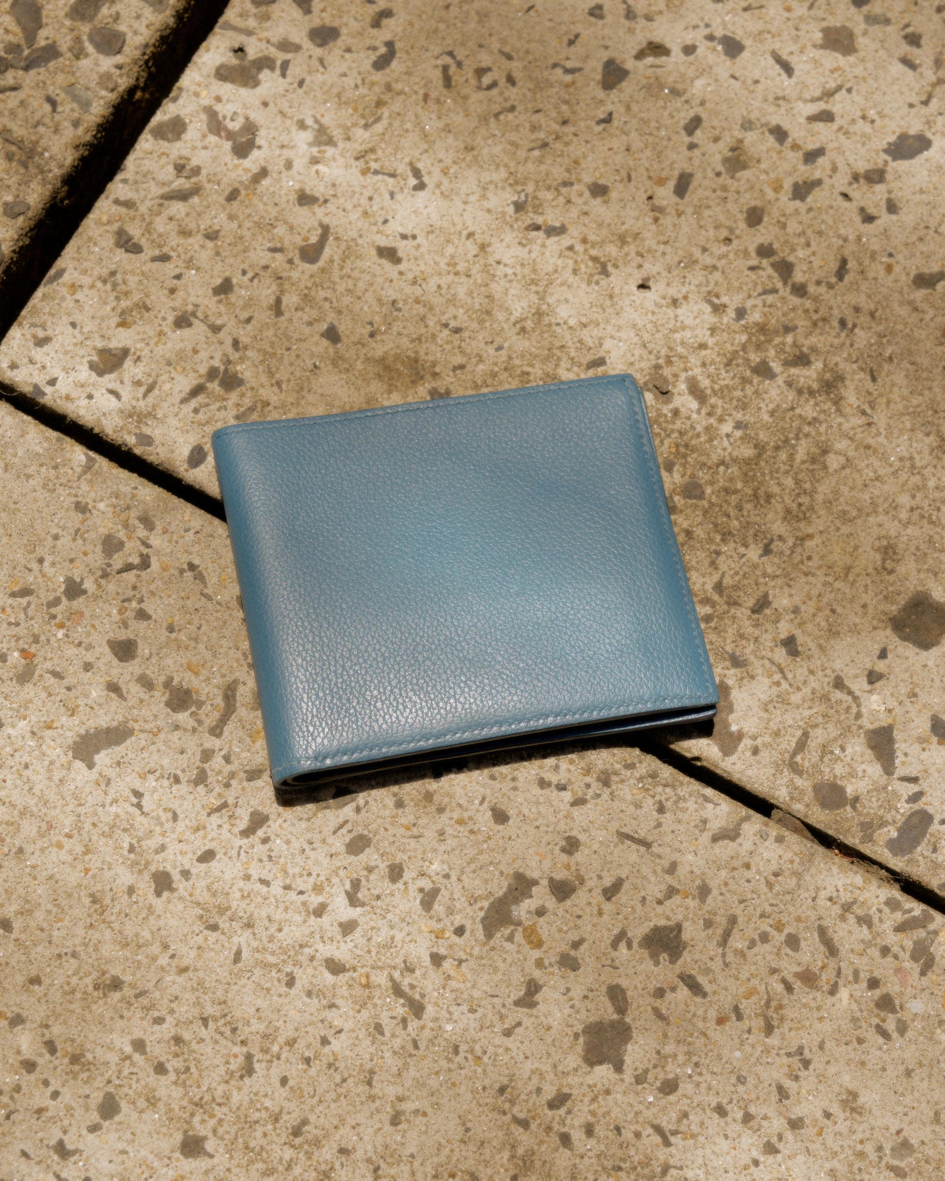 Bifold wallet in Evercolour calfskin. Features eight card slots, two internal pockets, bill pocket, tonal leather interior. Room for your cards and notes.