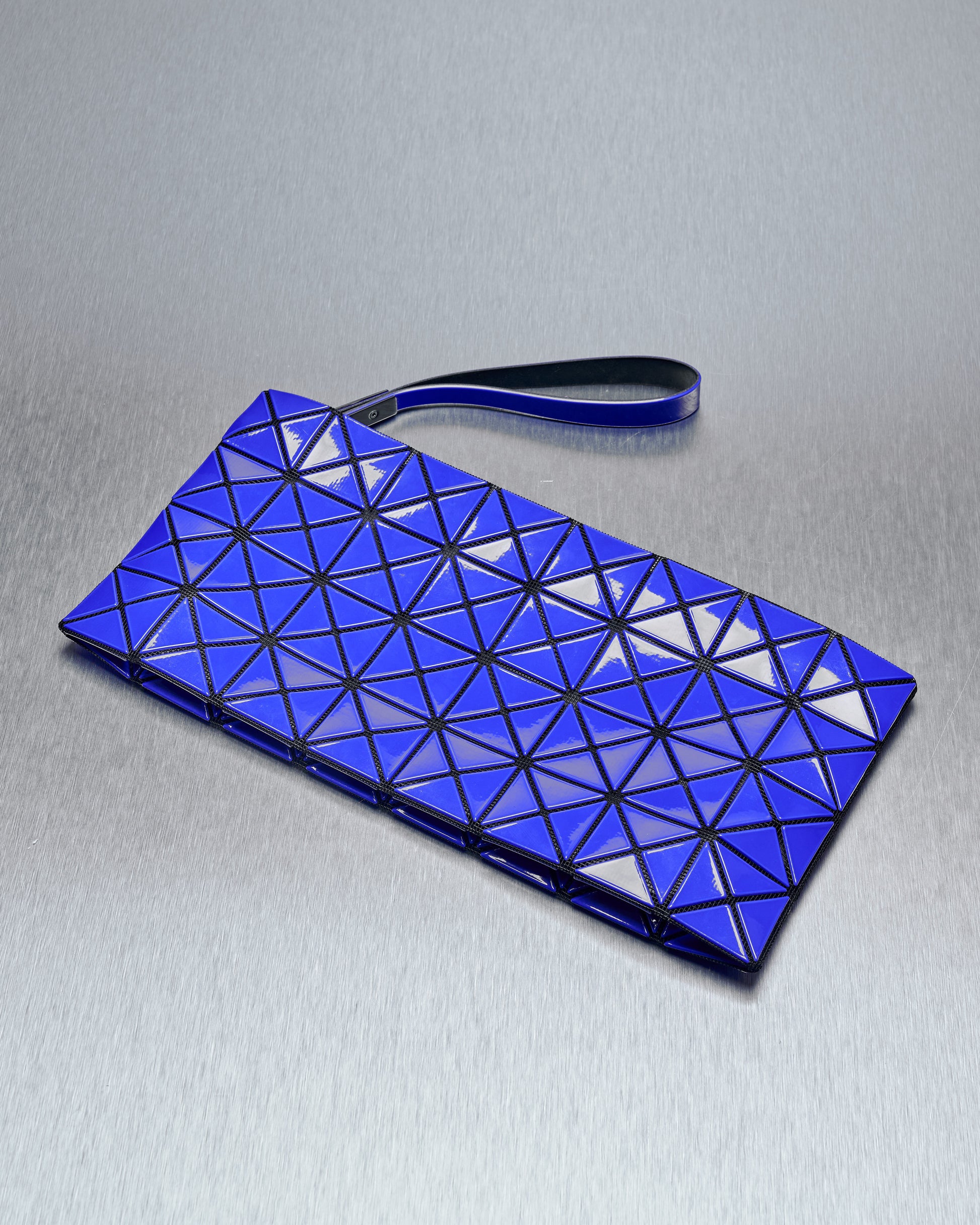 Miniature clutch bag in Bao Bao's signature geometric textile. Features a zip closure with handle pull, polished metal hardware throughout. Room for your phone, wallet, and touch-ups.