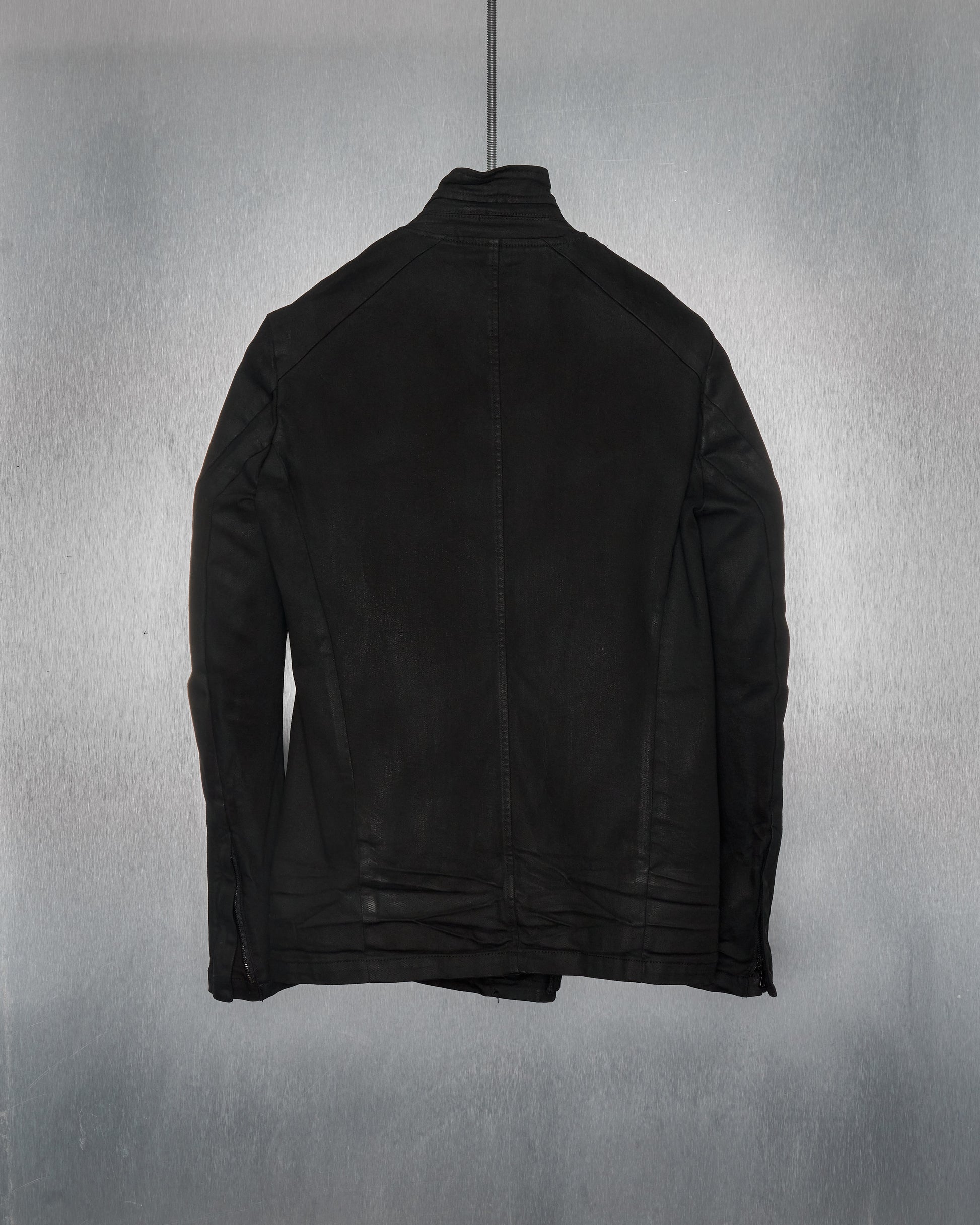 Panelled mac coat in warm wool nylon. The straight silhouette can be adjusted with an internal pull, cinching it to the wearers waist. Features double-zip front with press stud flap, hidden hood in zip neck pocket, ribbed cuffs and hip pockets . Dry clean only
