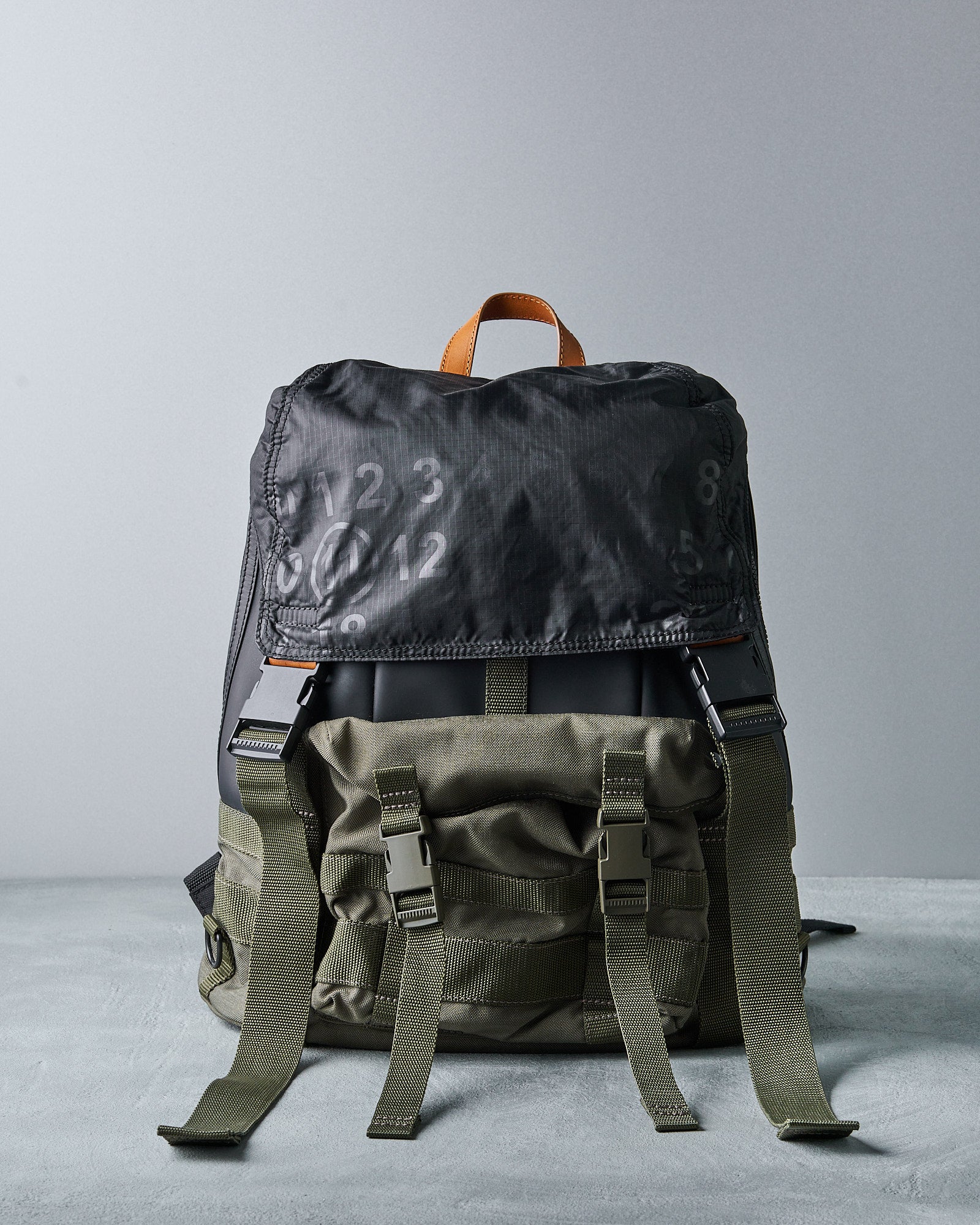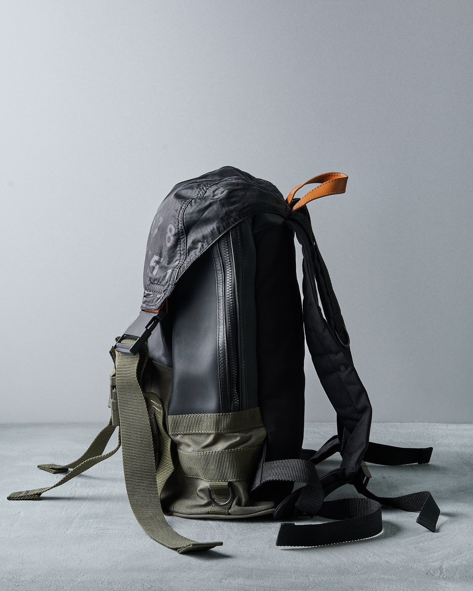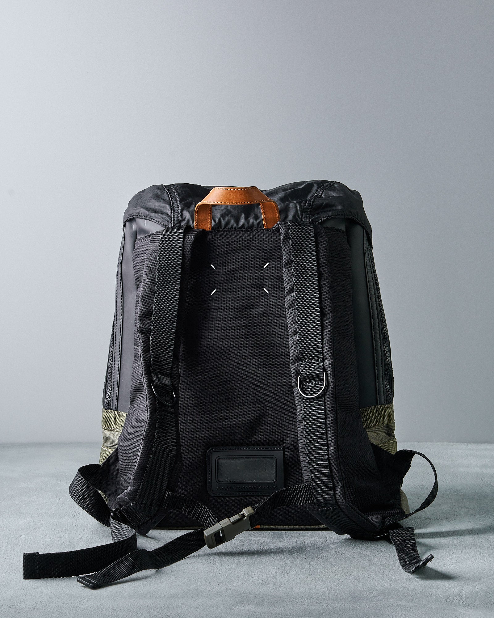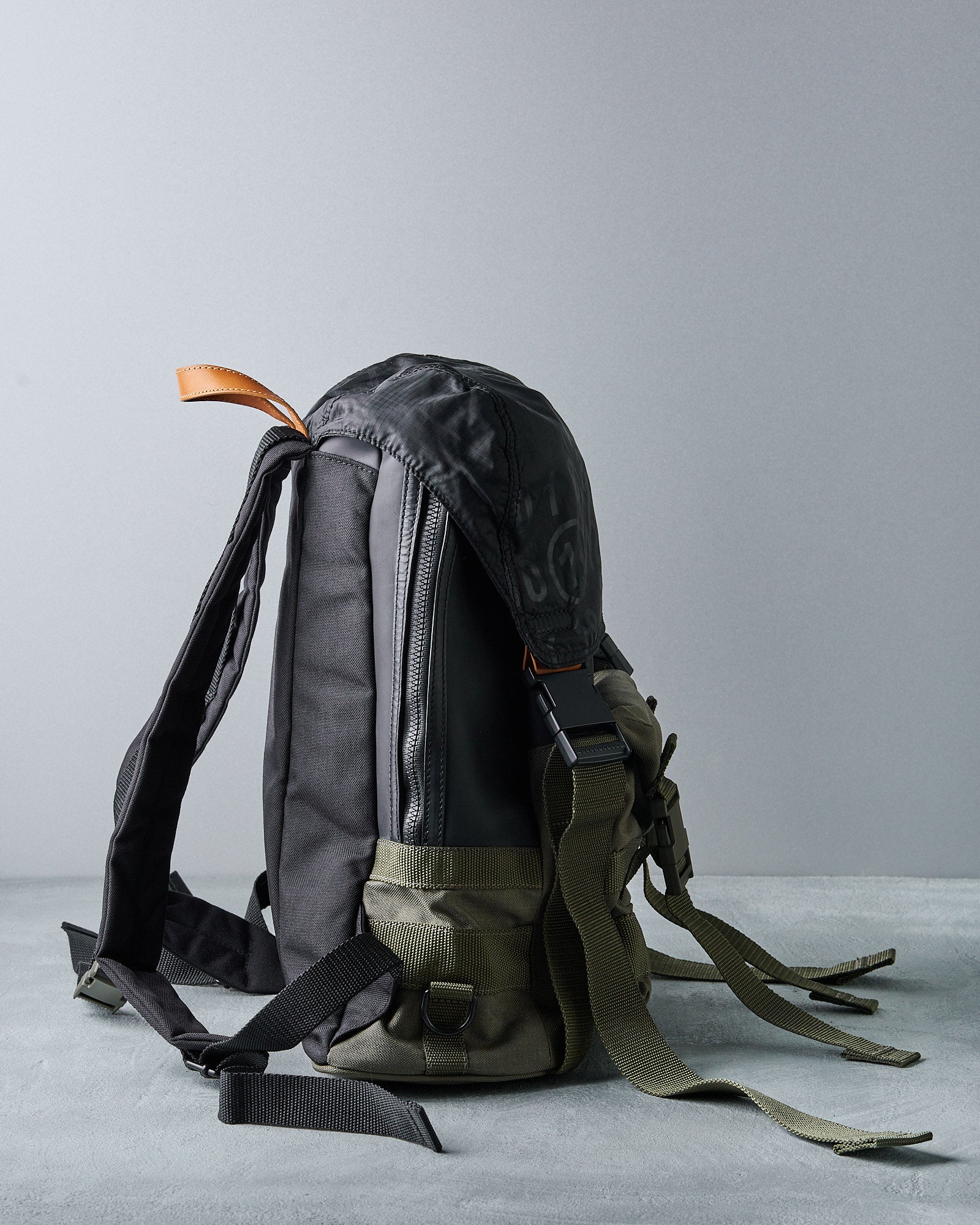 Field-ready rucksack constructed from a rubber-nylon upper and canvas base. Features double-zip closures with internal compartment separators, protective flaps with clips, adjustable shoulder straps. Room for all your daily needs.