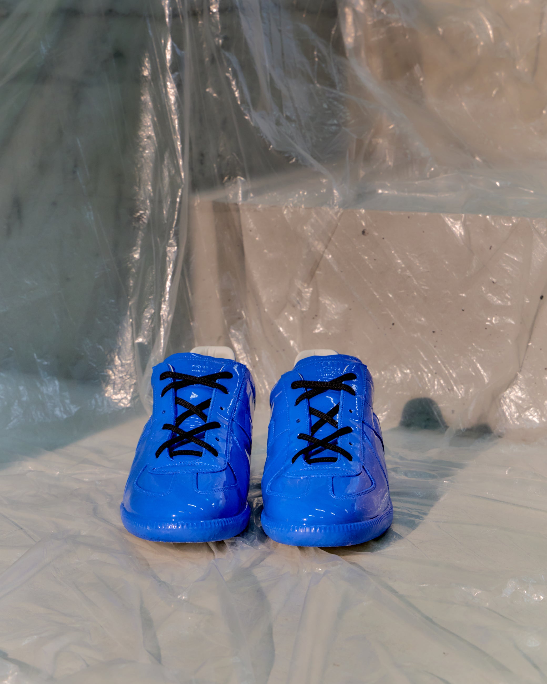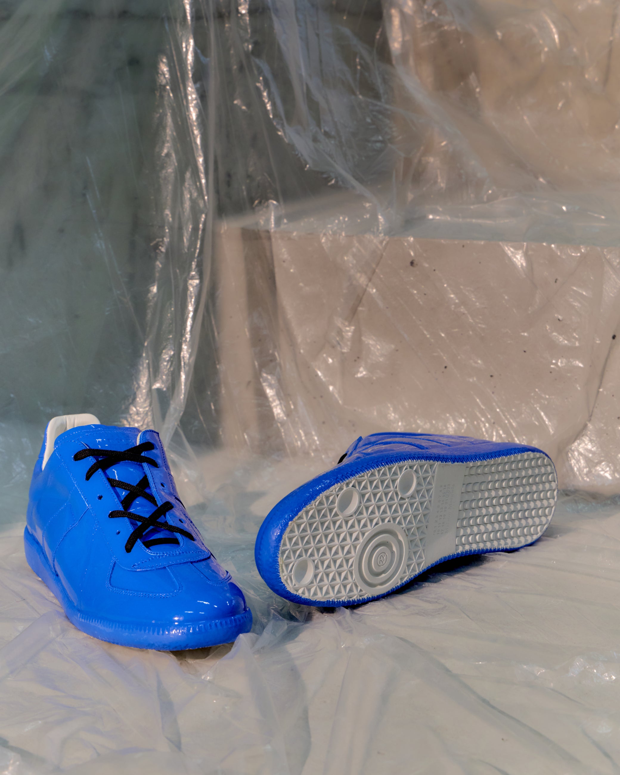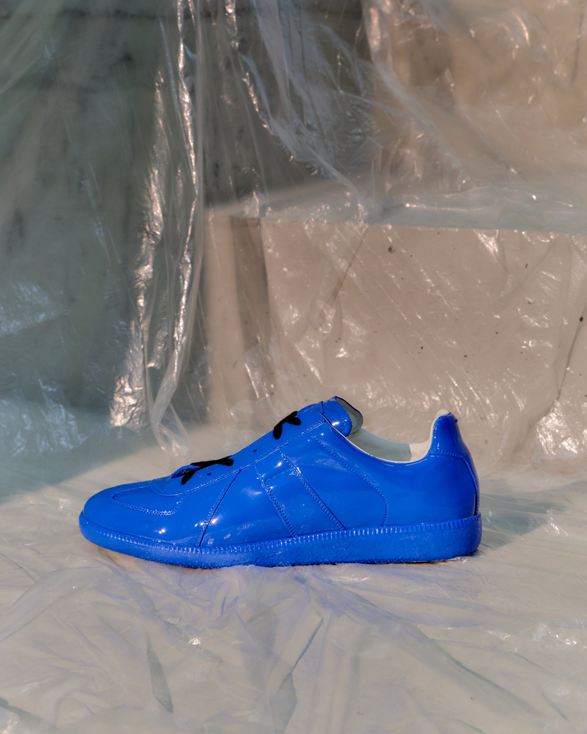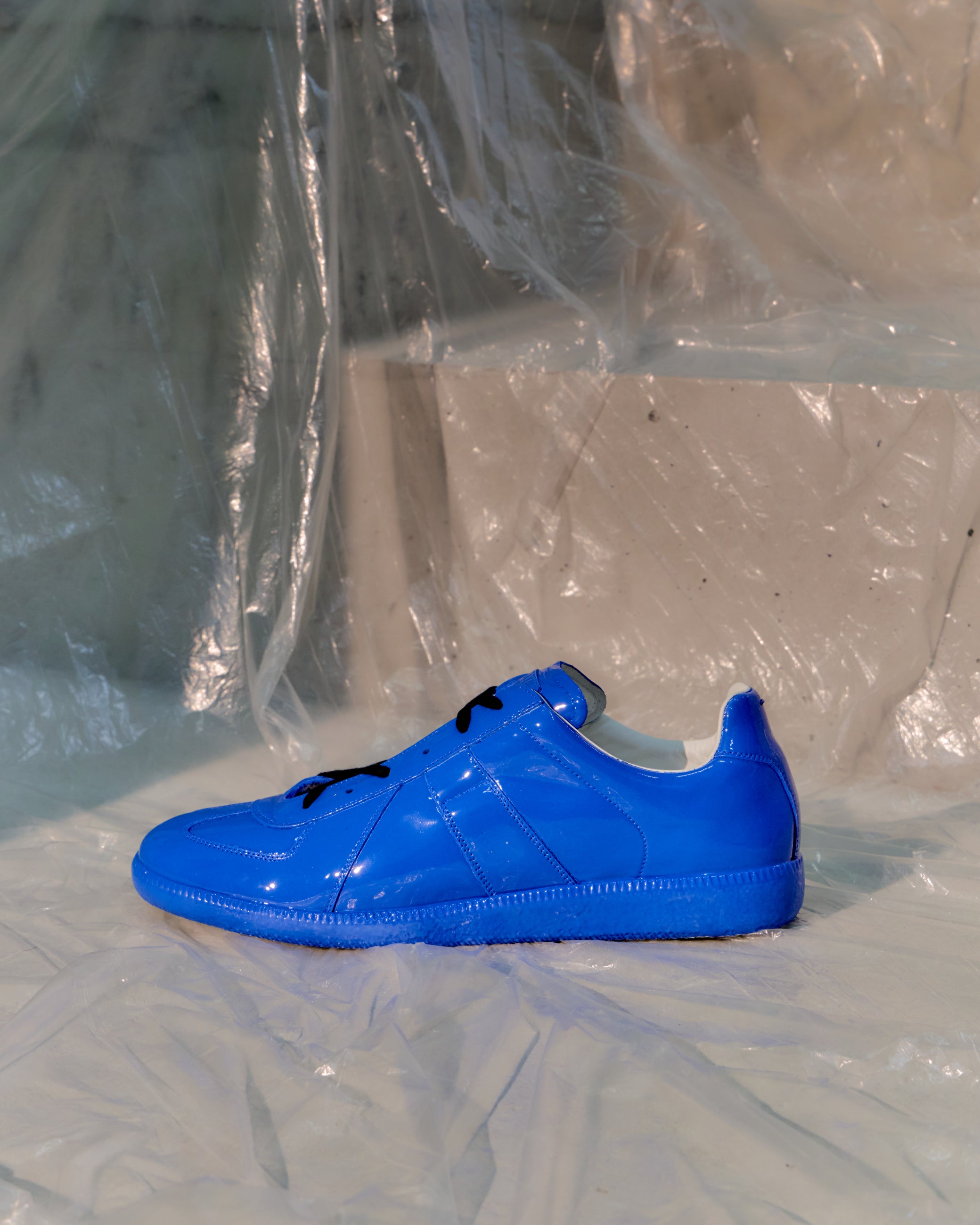 2022 edition GAT Replica trainer in Blue rubber-dipped finish that smooths the GAT into a monochrome sculptural form. Minimal silhouette, maximal impact. Big Papa Smurf Energy.