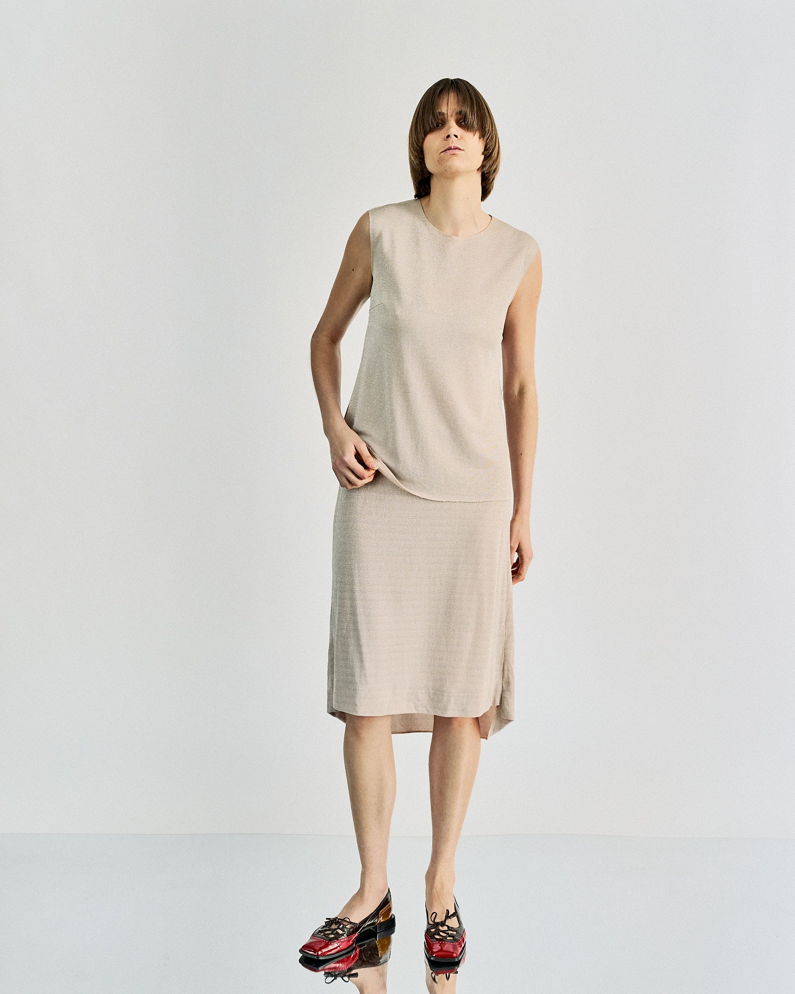 Skirt _ A-Line fit with elastic waist, dropped hem.