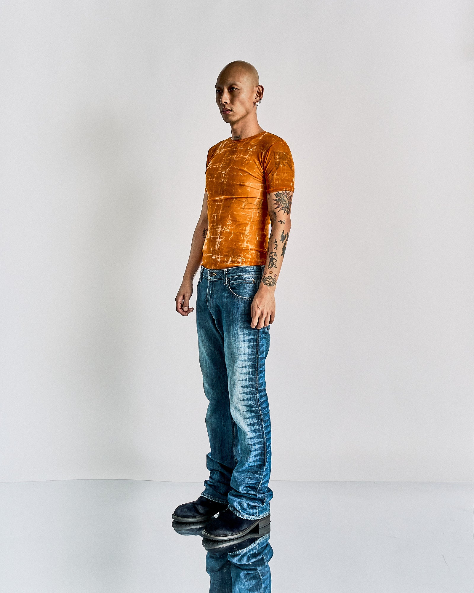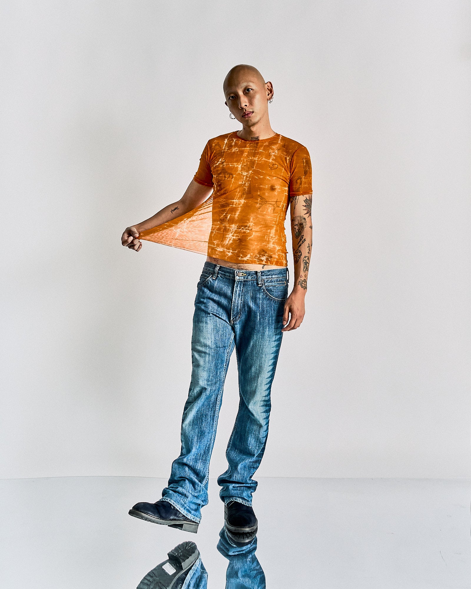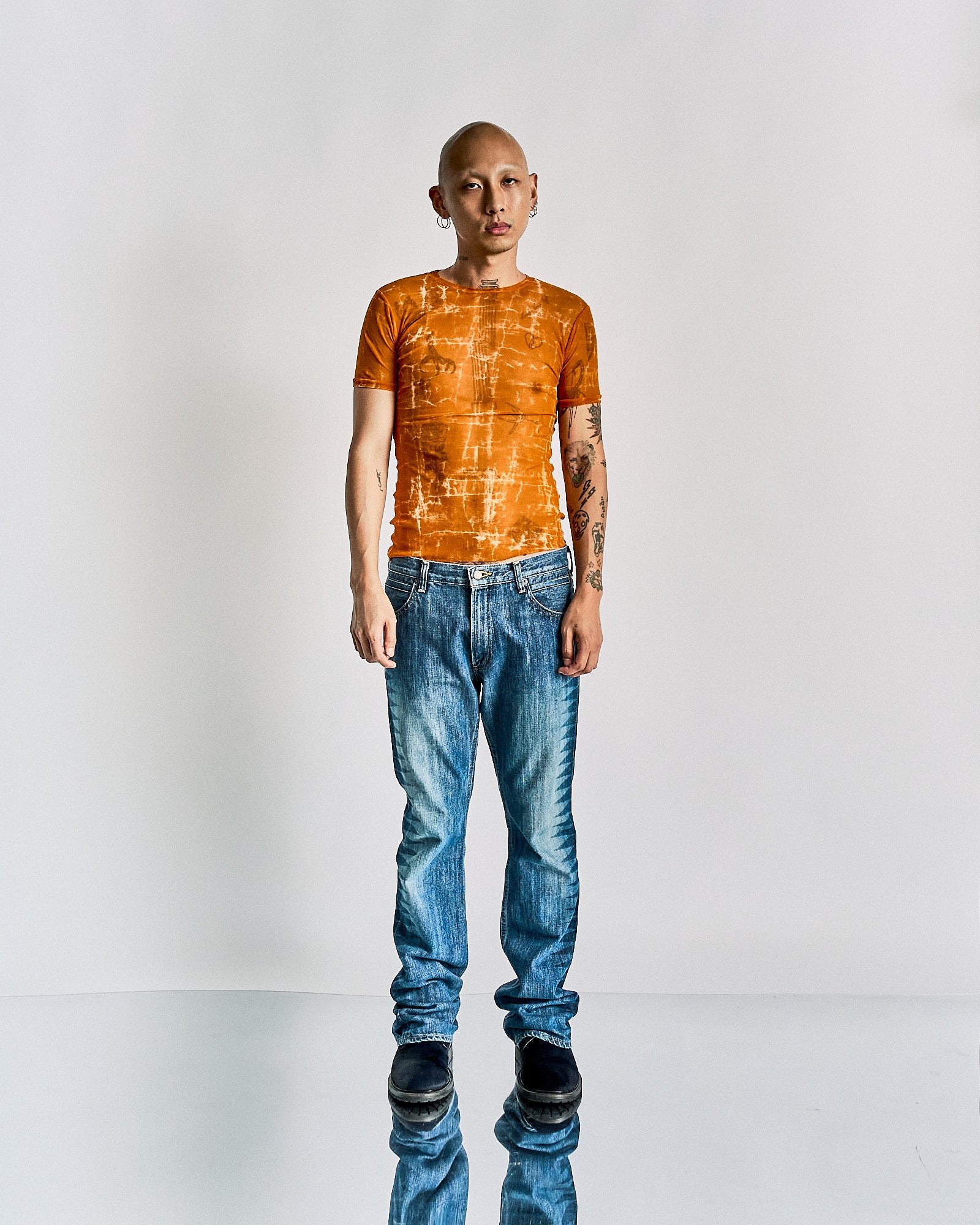 Slim-fit mesh t-shirt in sheer stretch gauze. The durable fabric allows for a skin-tight fit. Features an all-over tie-dyed print. Delicate hand wash only.