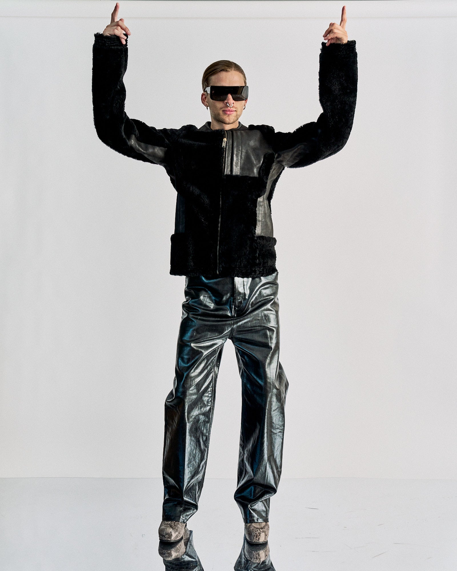 Rick Owens FW 2013 Plinth Look 32 Fur and leather zip jacket