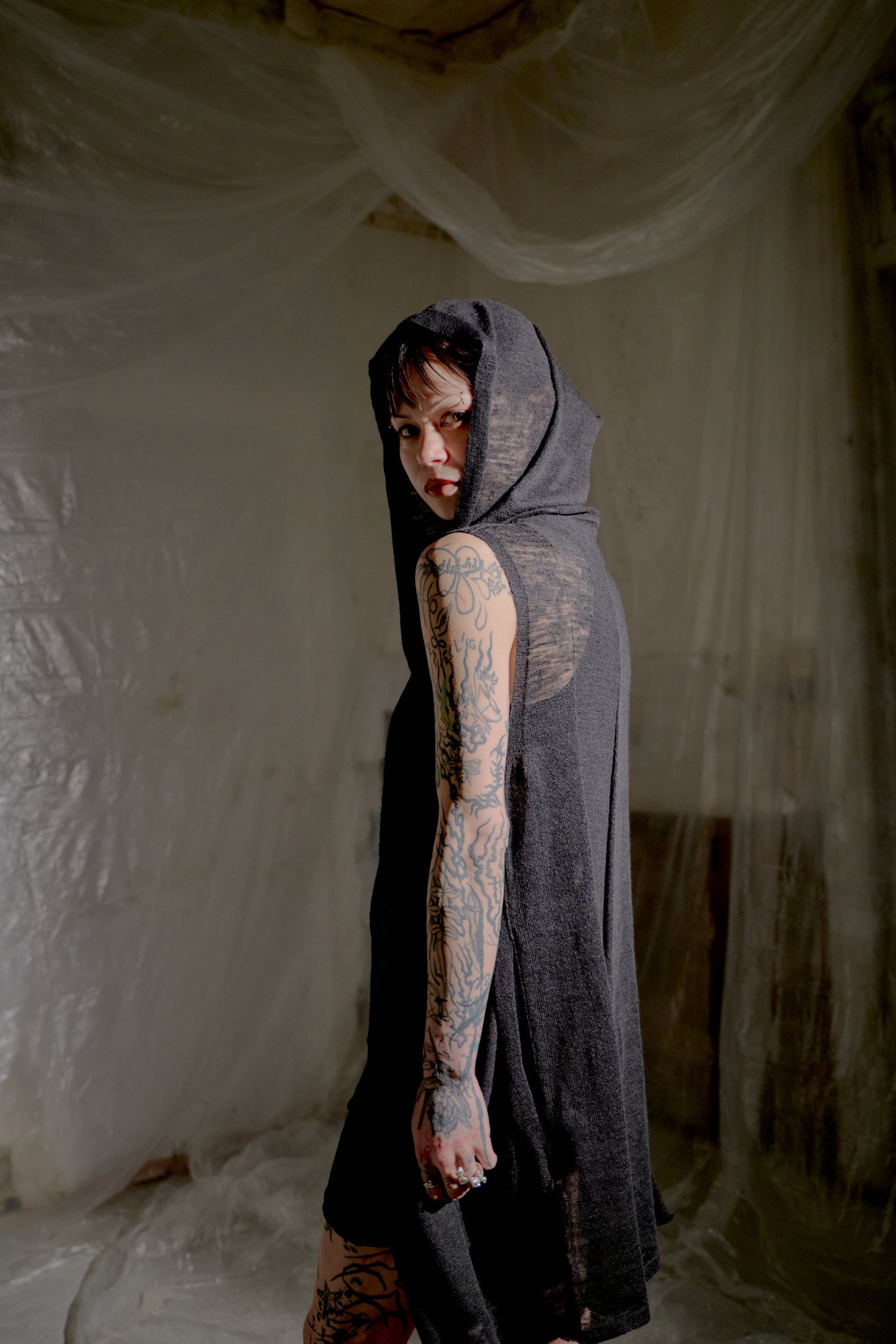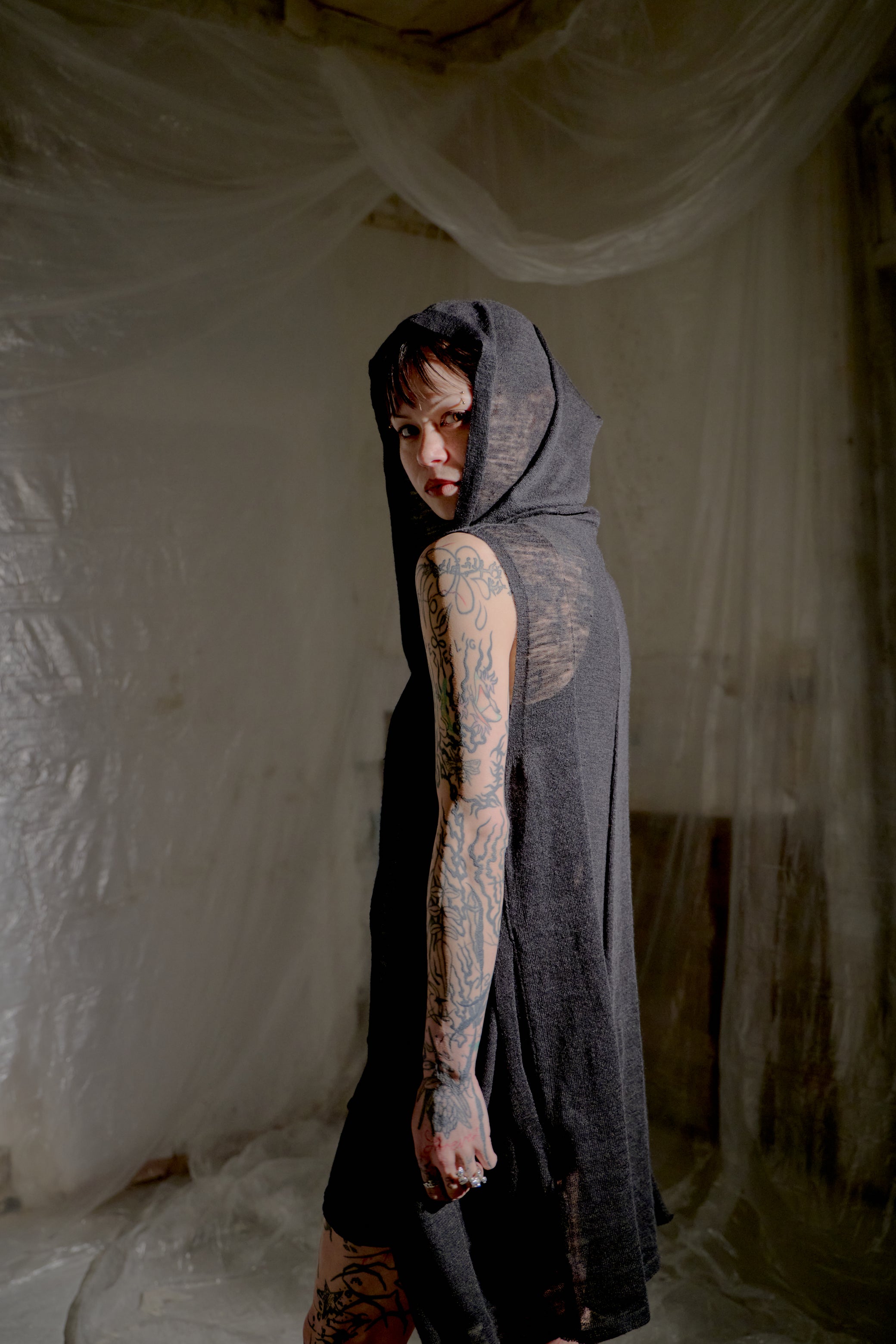Hooded woven knit sleeveless vest from Rick Owens Spring Summer 2016 'Cyclops' collection. features a sleeveless and relaxed silhouette, single button closure at chest and a softly draping hood.