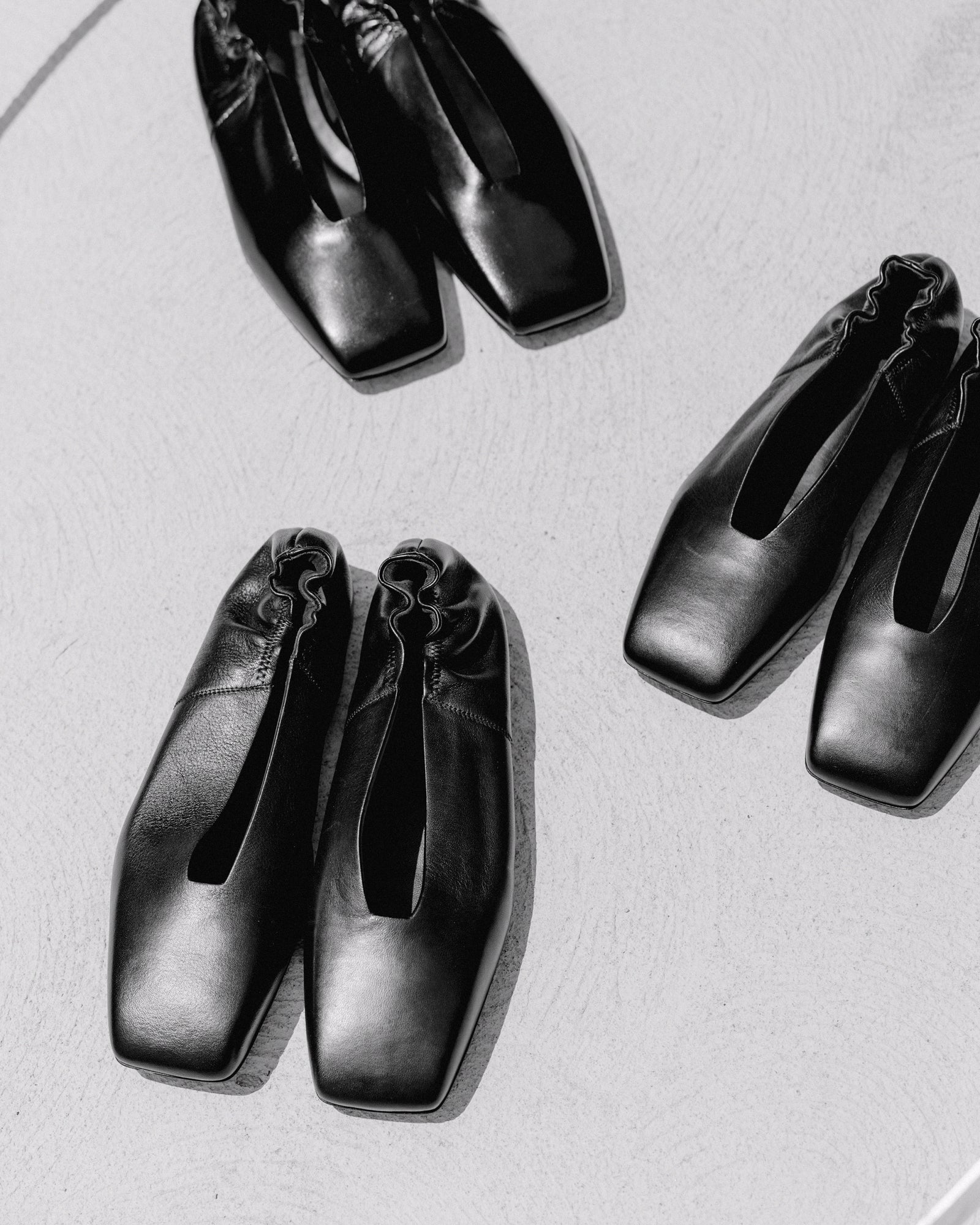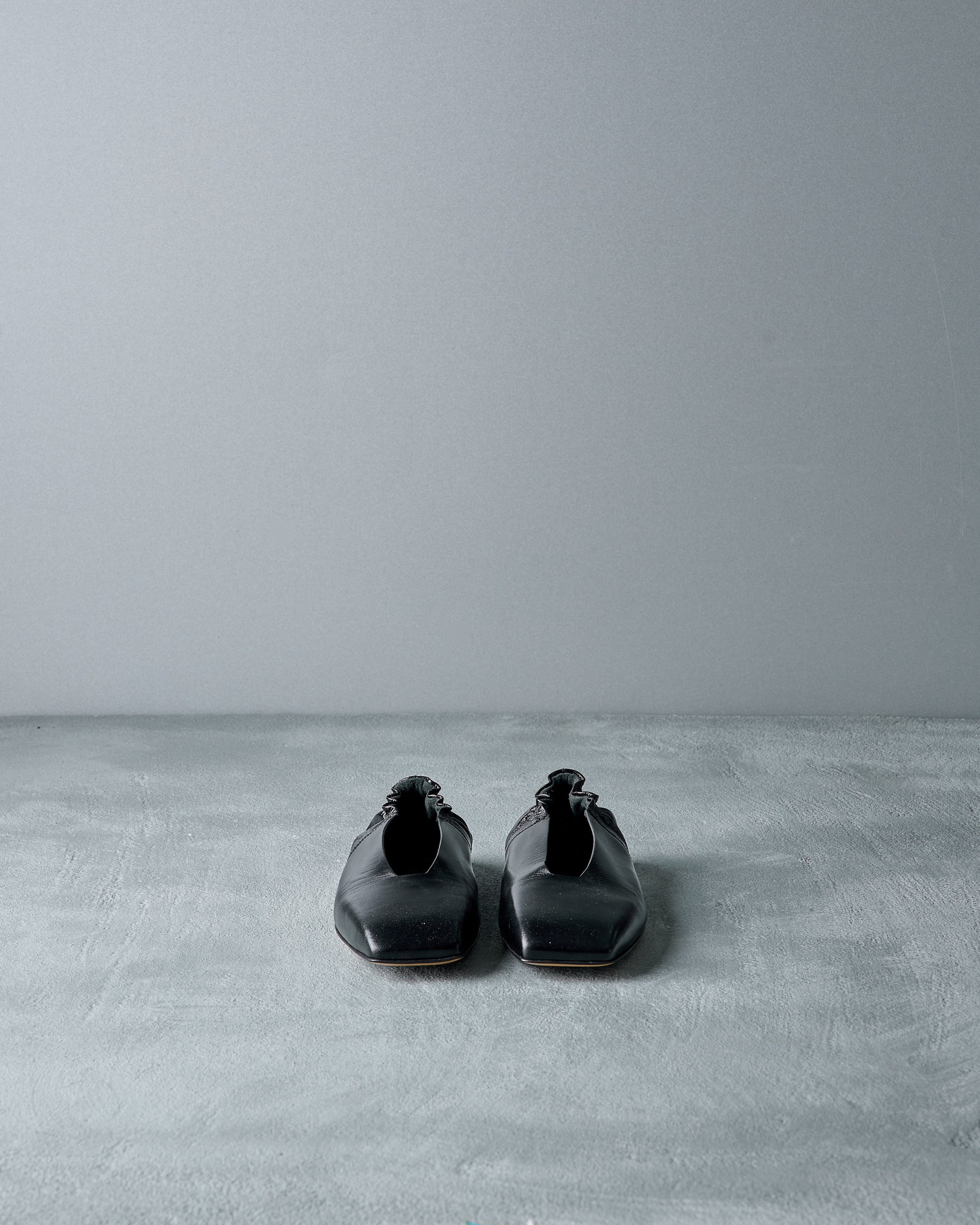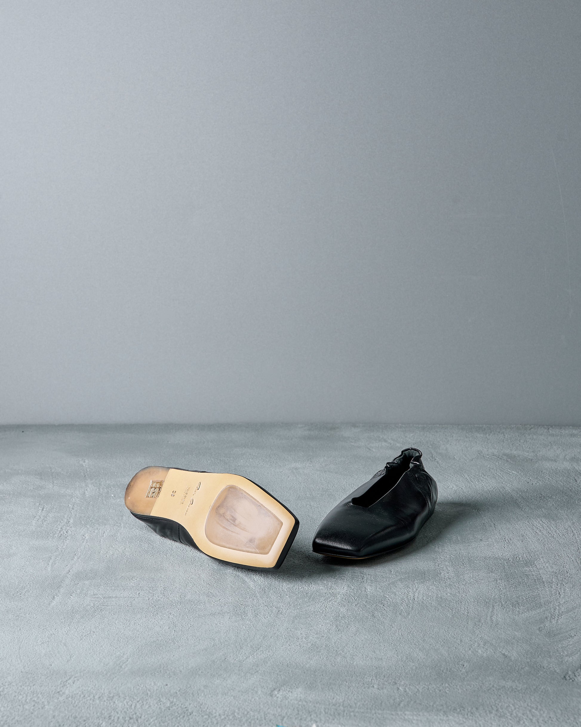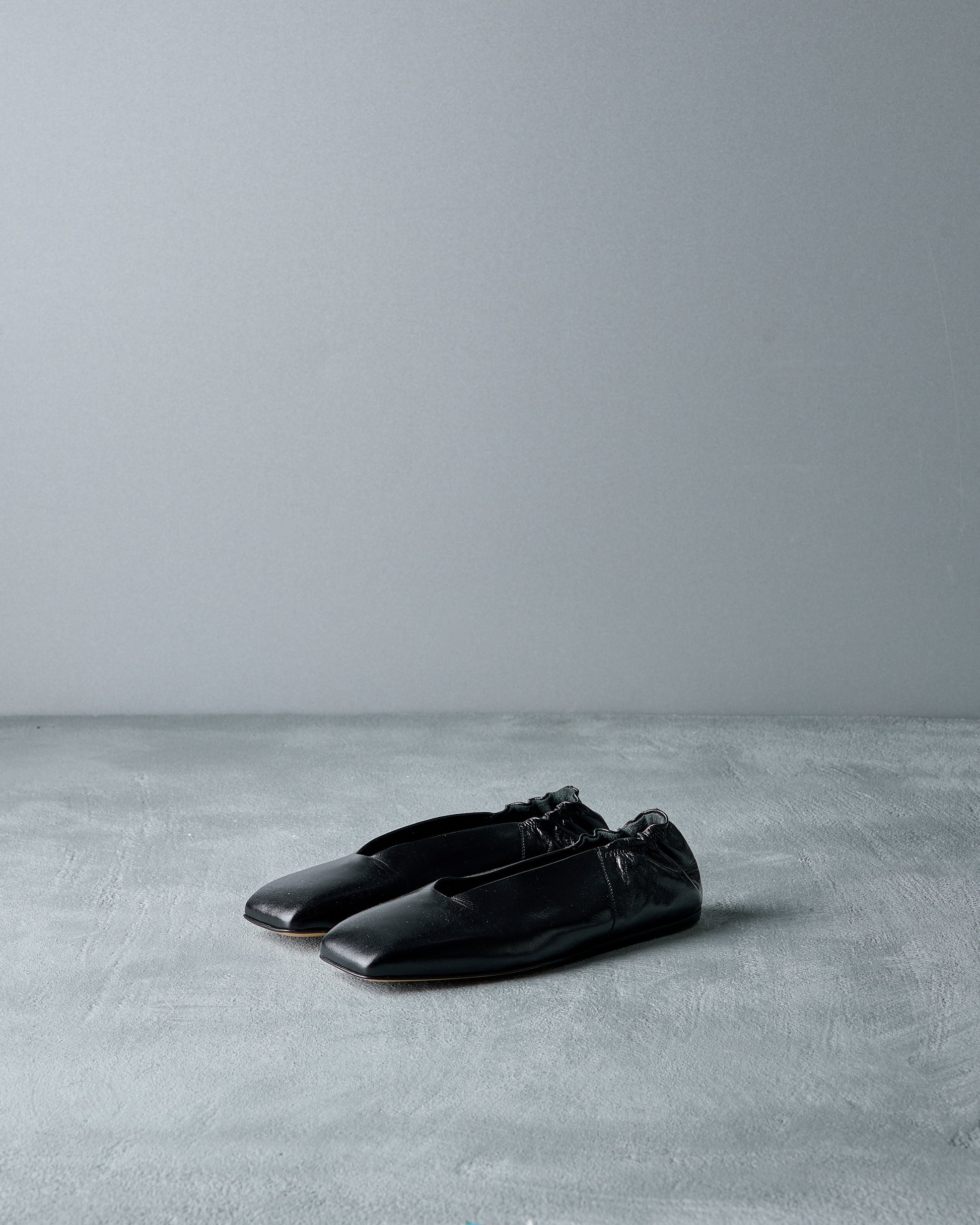 A delicately feminine style from Spring Summer 2017 with a distinctive squared off toe, the GEOBALLERINA is a low-profile slip on style flat with an elasticated heel for a very comfortable fit. GLoss calf structured leather and a sculptural sole. Elegant, with edge.