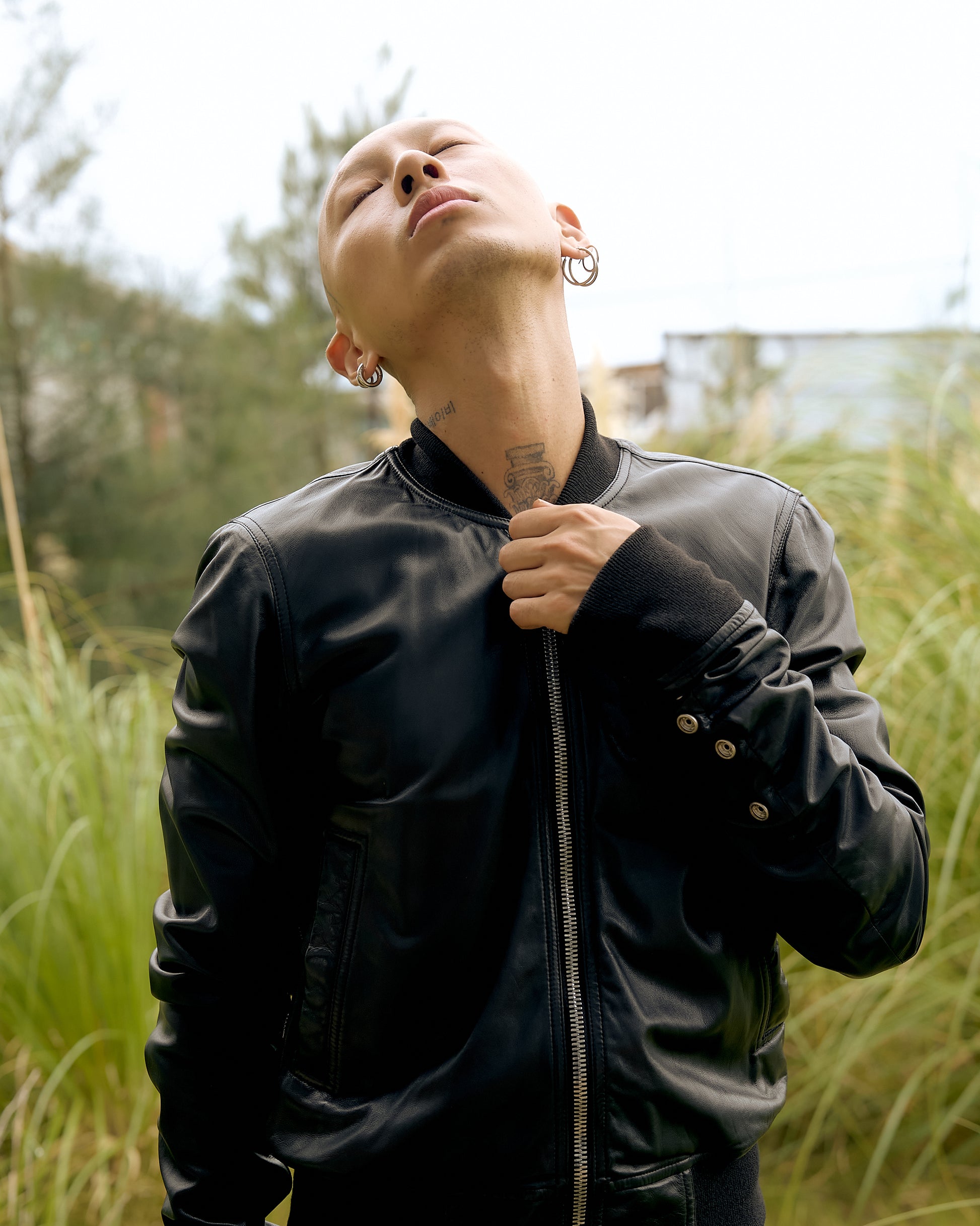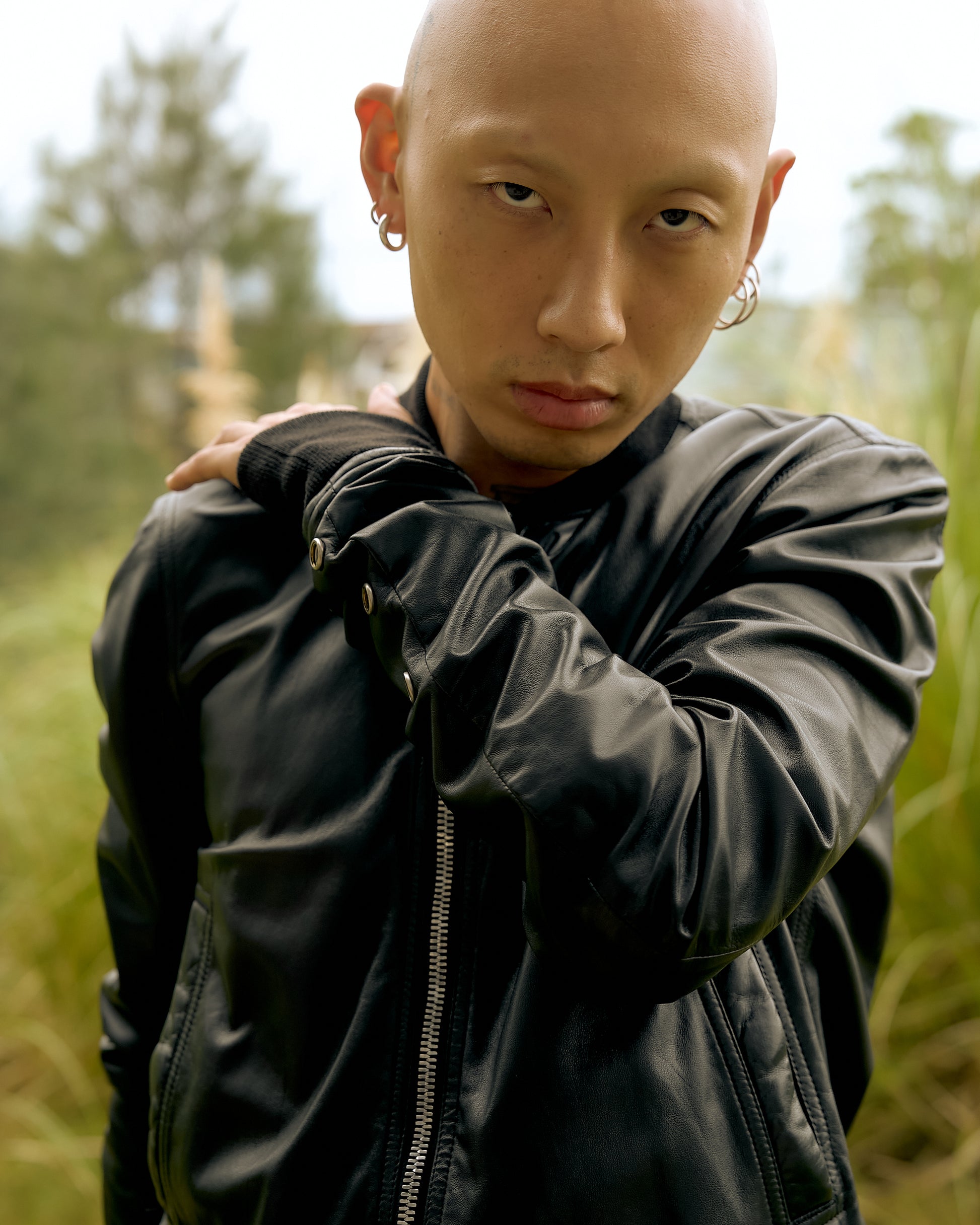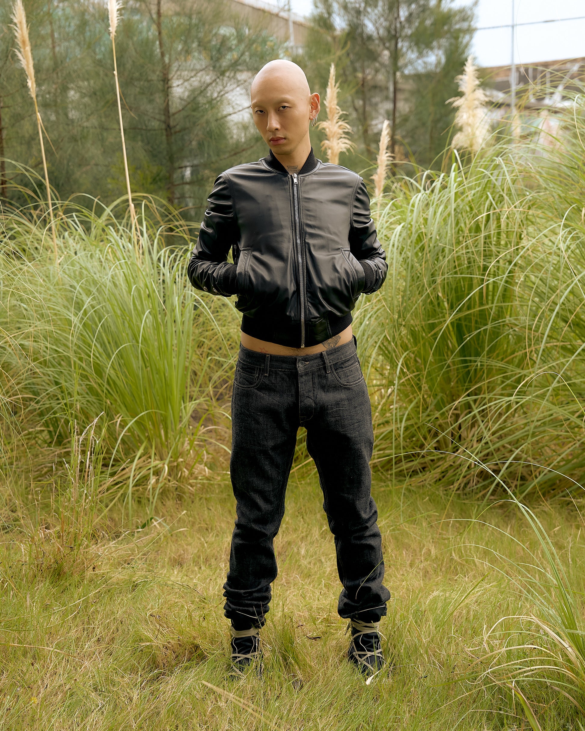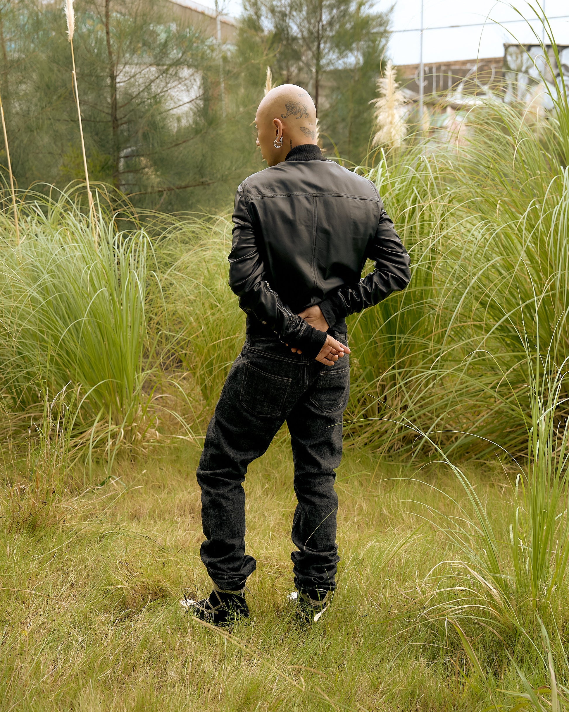 Slim bomber jacket in soft lambskin leather. The cropped fit and elongated sleeves provide a grunge silhouette which recalls the designer's Los Angeles punk scene roots. Features a chunky zip front, three external and two internal pockets, full lining, ribbed cuffs and base. Press stud closures on the sleeves allow the arms to be conjoined, transforming the jacket into a cross-body bag. Dry clean only