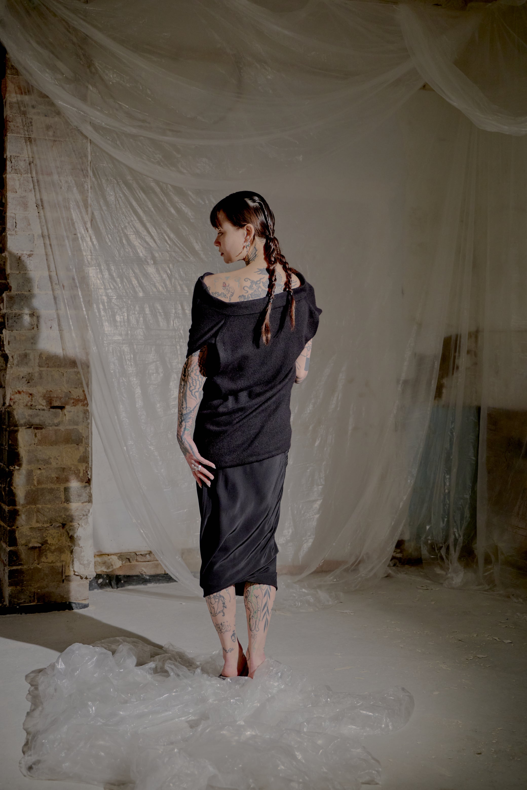 An incredibly rare knit top by Saint Laurent from the early 2000's, features a cowl draped neck, fine cable knit stitch woven from angora and wool to create a super soft texture. Can be worn as is or styled off the shoulder.
