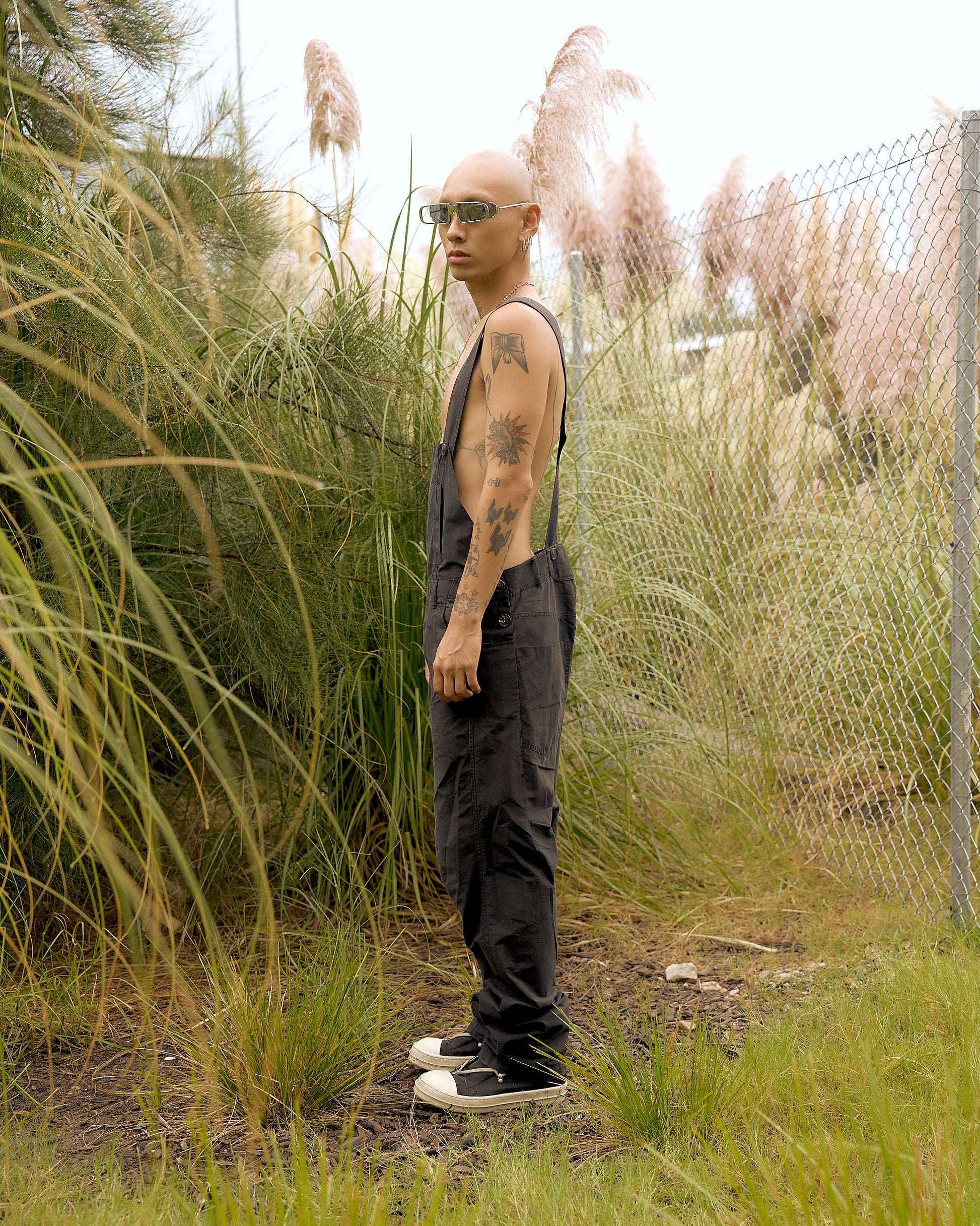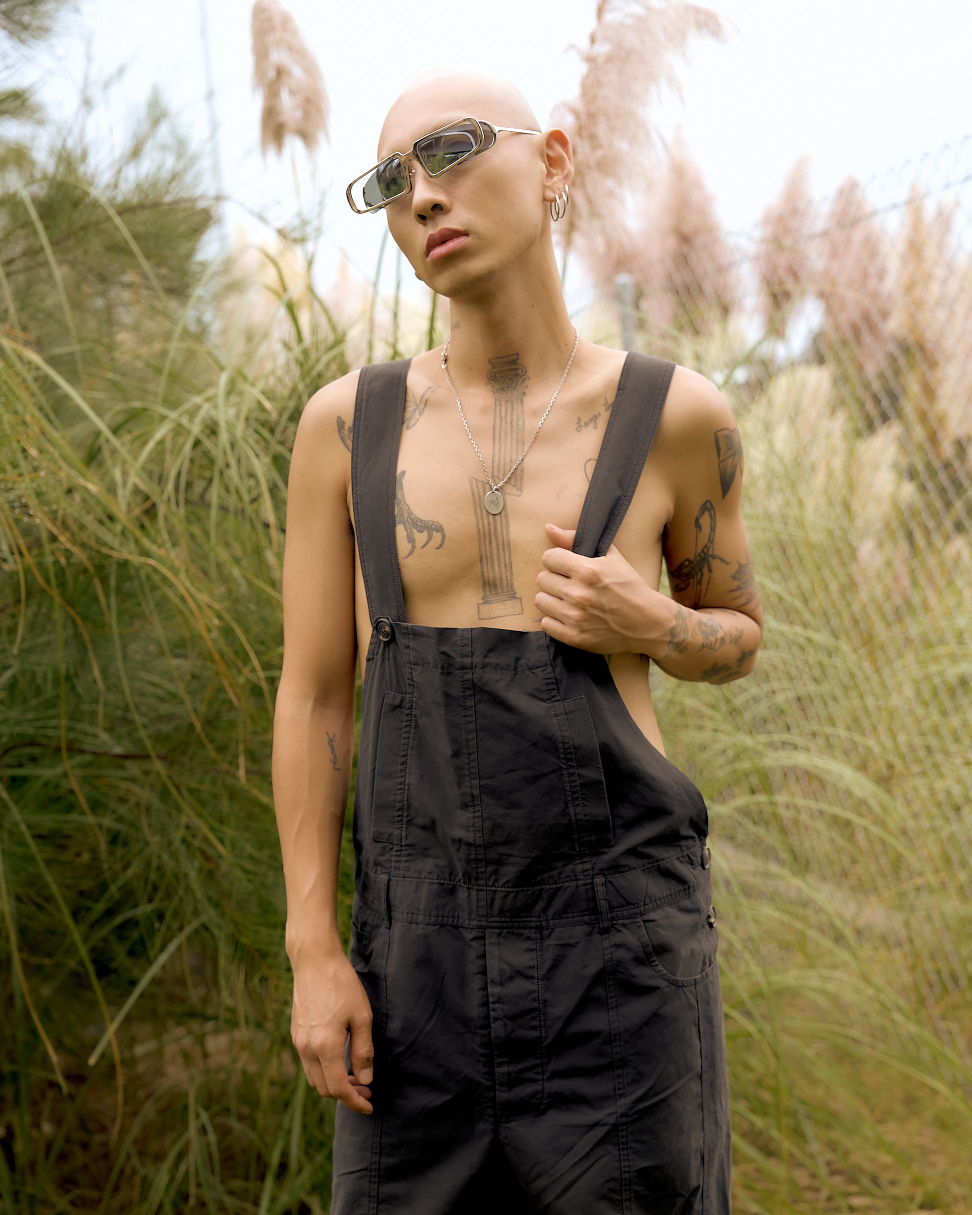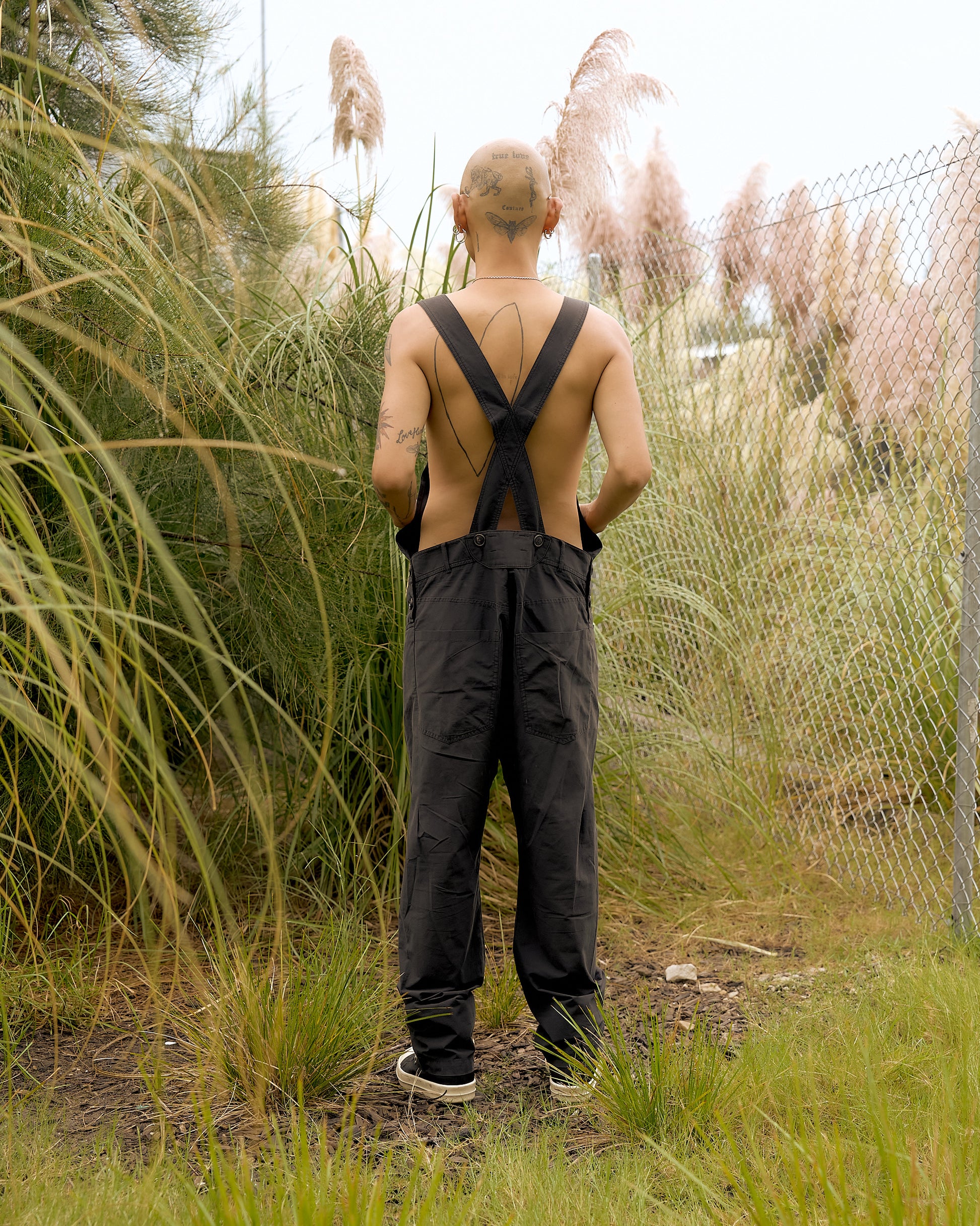 Adjustable overalls in lightweight cotton drill. Features side-button closures, three-button shoulder straps, six pockets, belt loops. Delicate cold wash