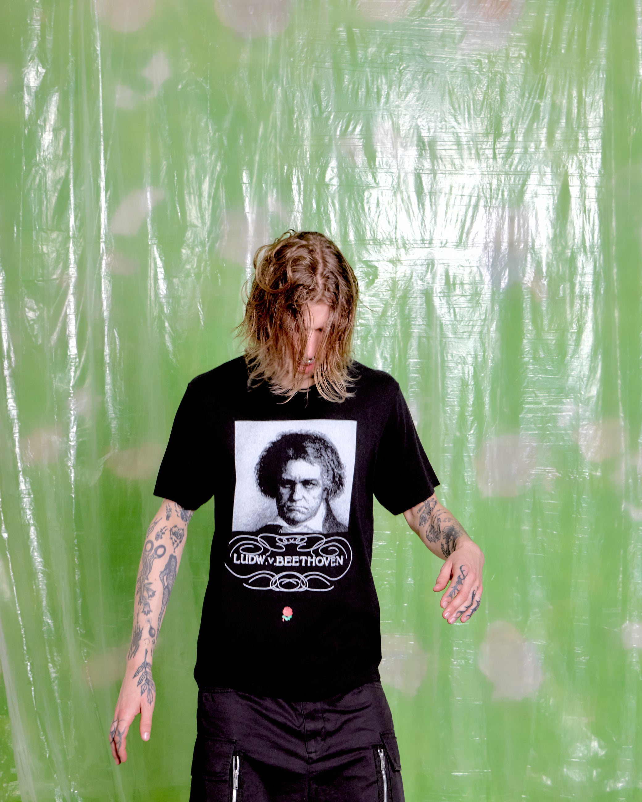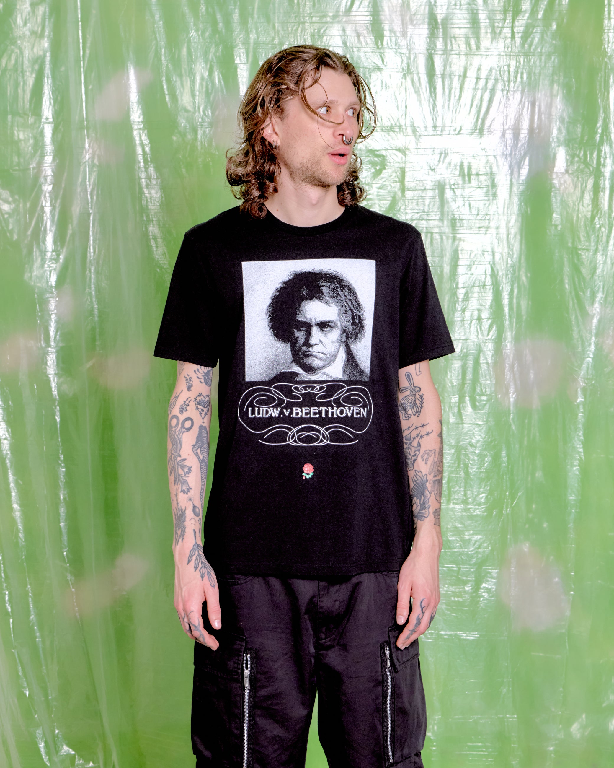 Undercover’s “Beethoven” T-shirt from Autumn/Winter 2019 fuses classical imagery with the label’s modern edge, resulting in a standout graphic piece with bold visual impact.