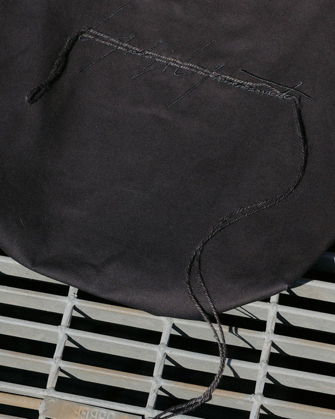Classic and functional tote bag in embroidered cotton canvas. Features a Yohji Yamamoto signature motif embroidered and left to hang long.